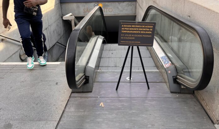 Uma das escadas rolantes da Estação de Metro de S. Bento vai continuar parada por tempo indeterminado, estando pendente a sua resolução de determinadas peças que vêm de fora do país.